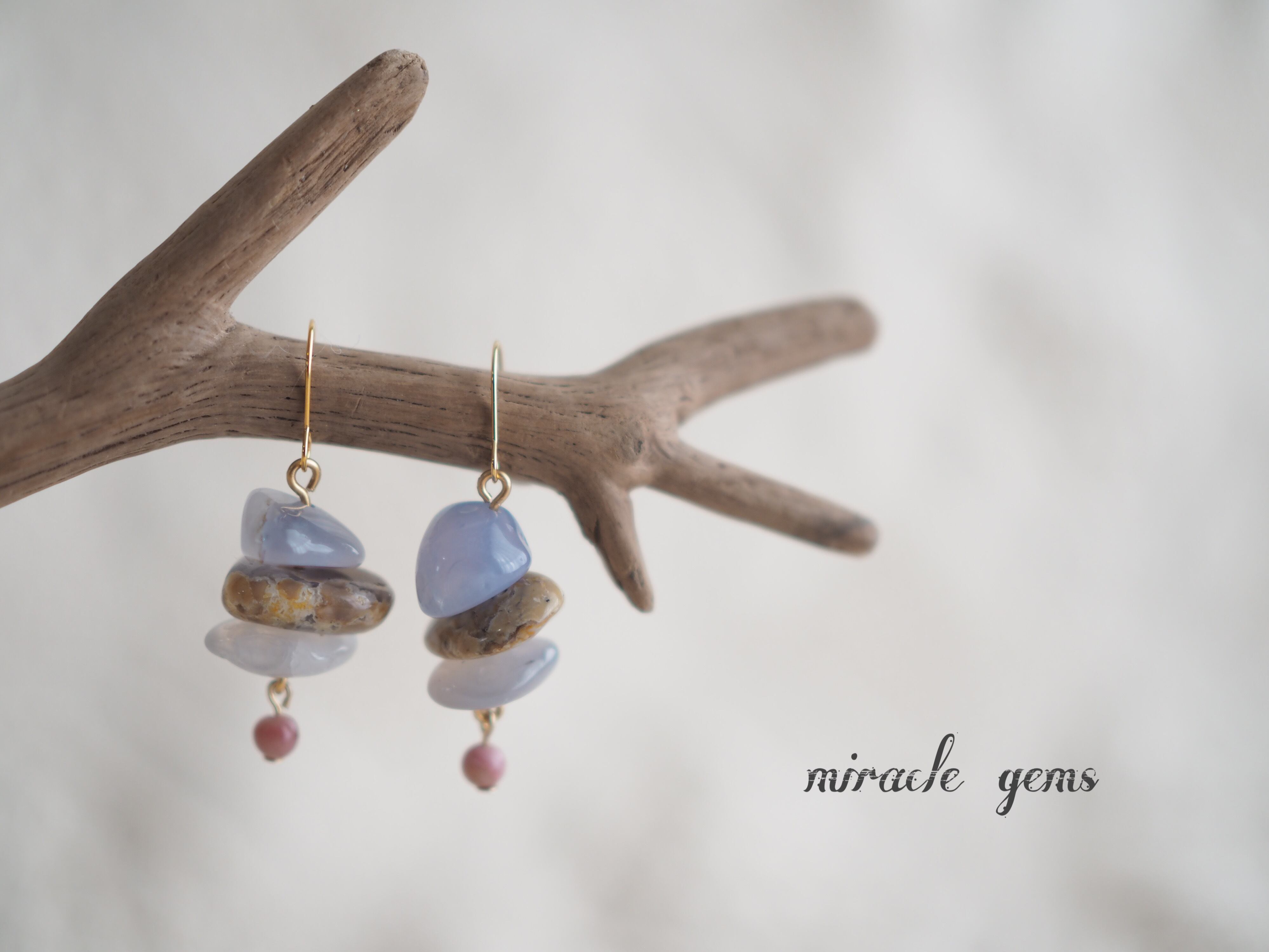ブルーカルセドニーは母石のついたタンブルストーンなので石それぞれ形も色味も違います。