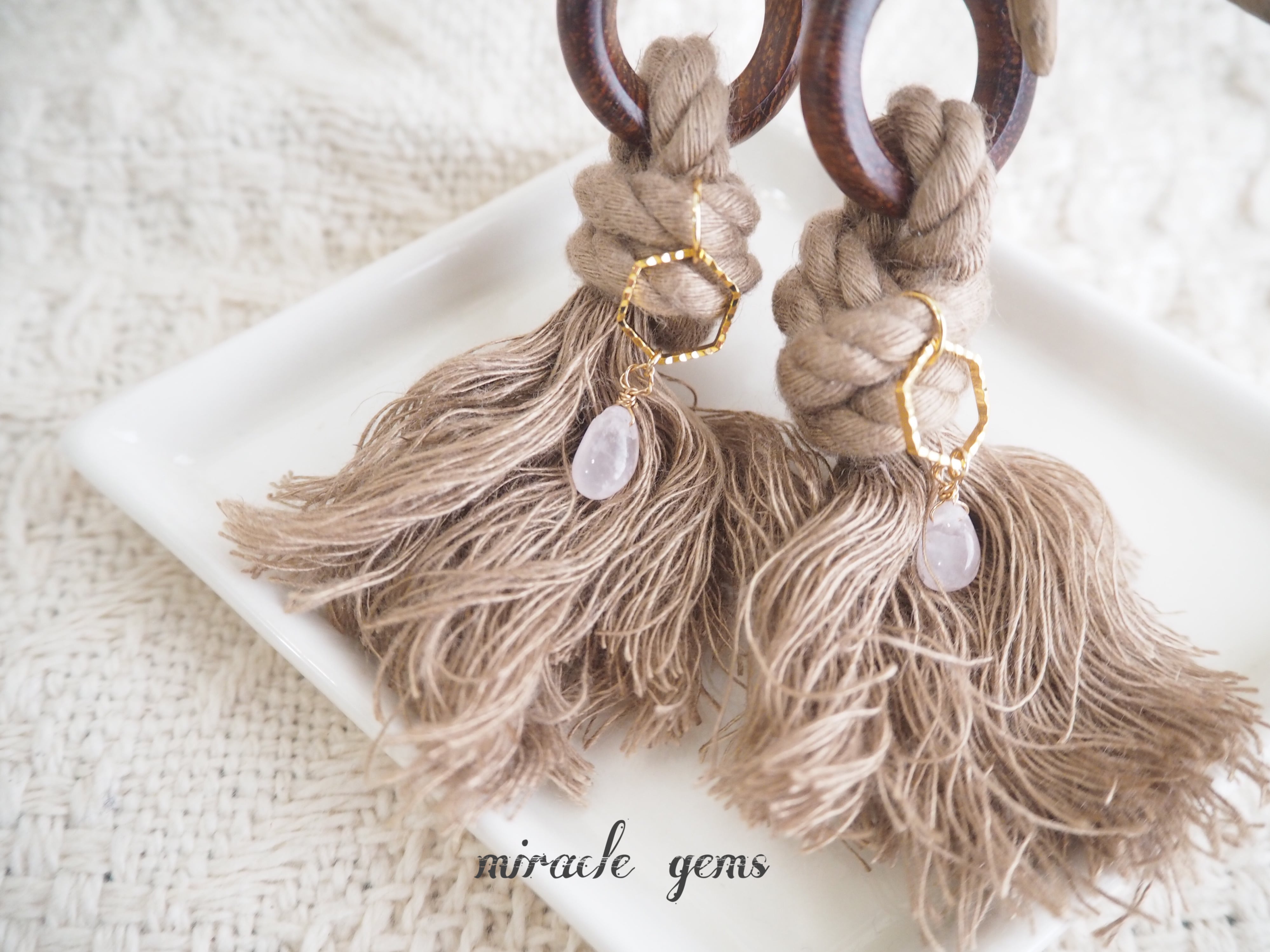 天然石ローズクォーツを使用した大ぶりのピアスです。