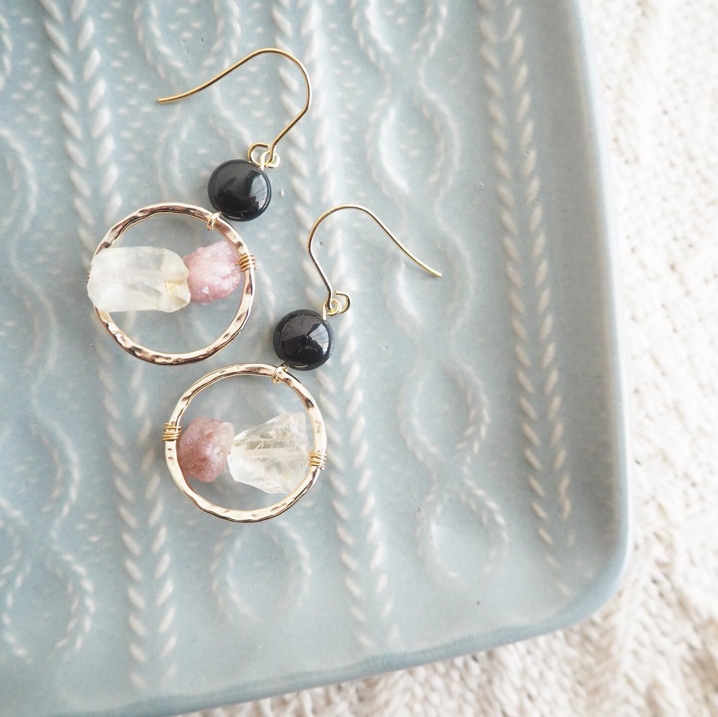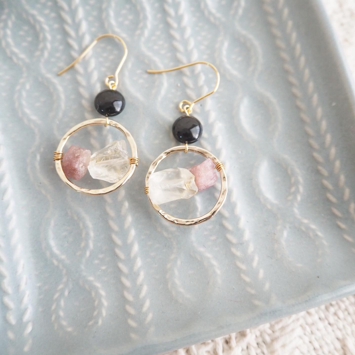 天然石オニキス、シトリン、ピンクトルマリンを使用したピアスです。