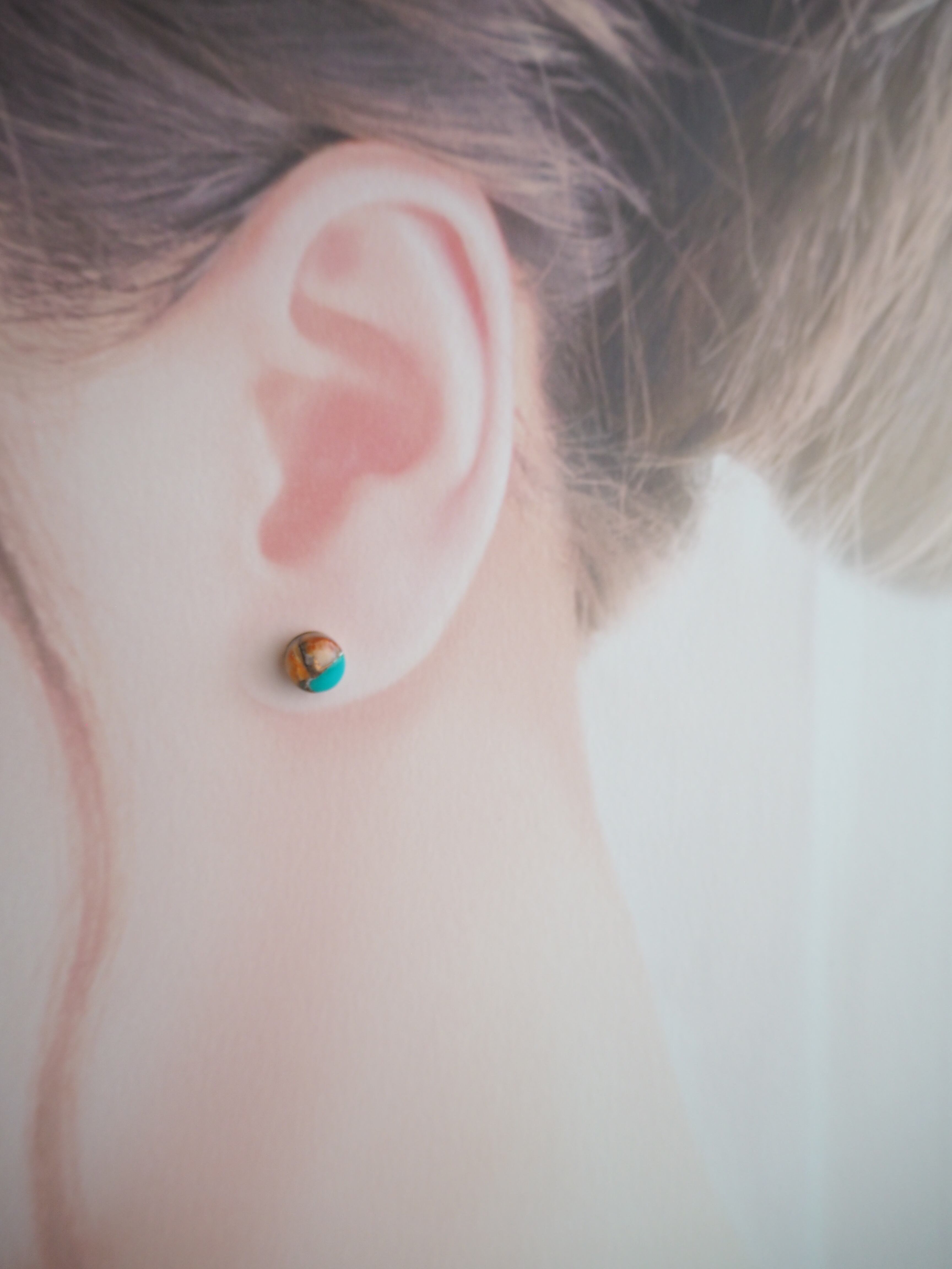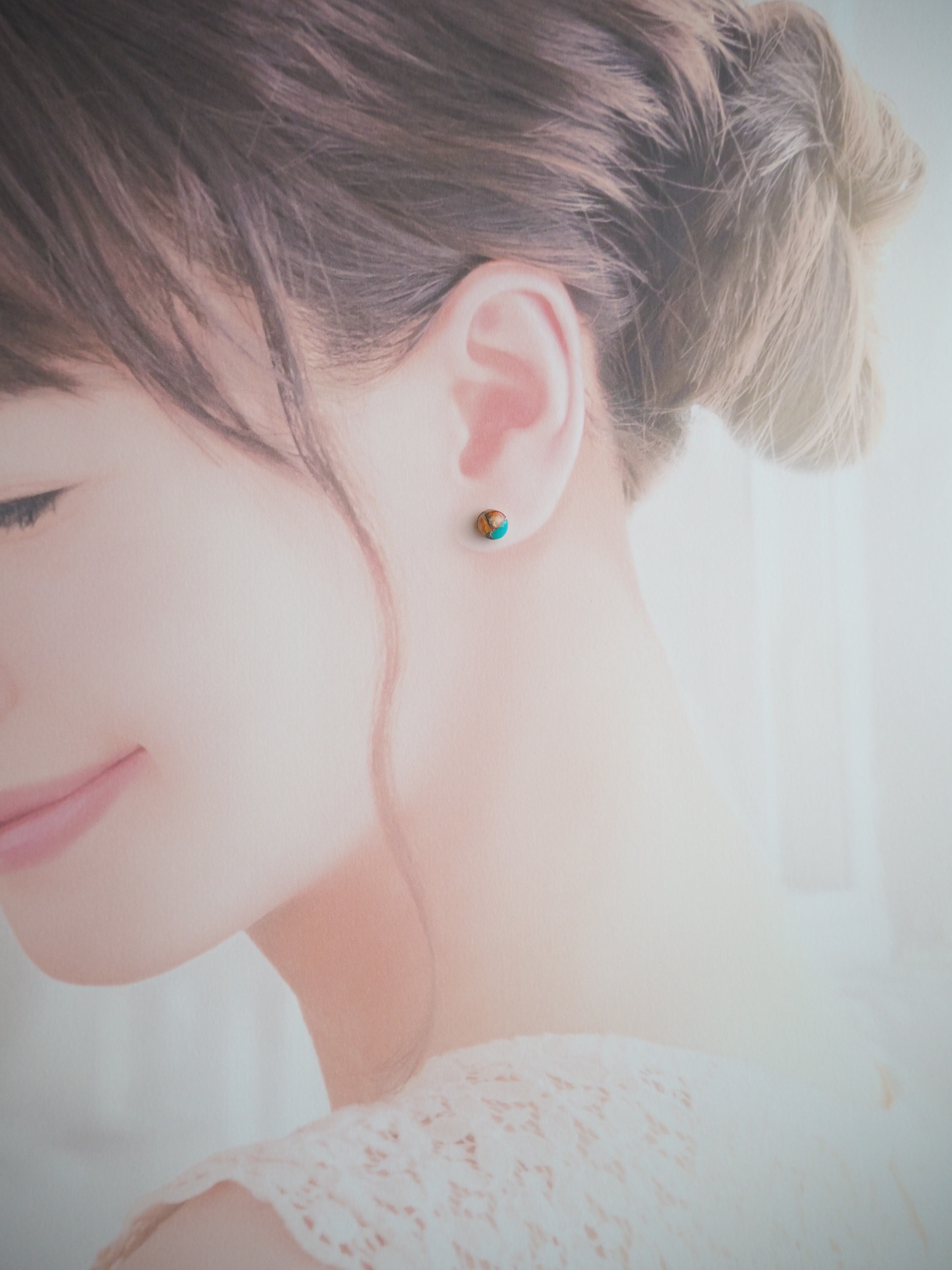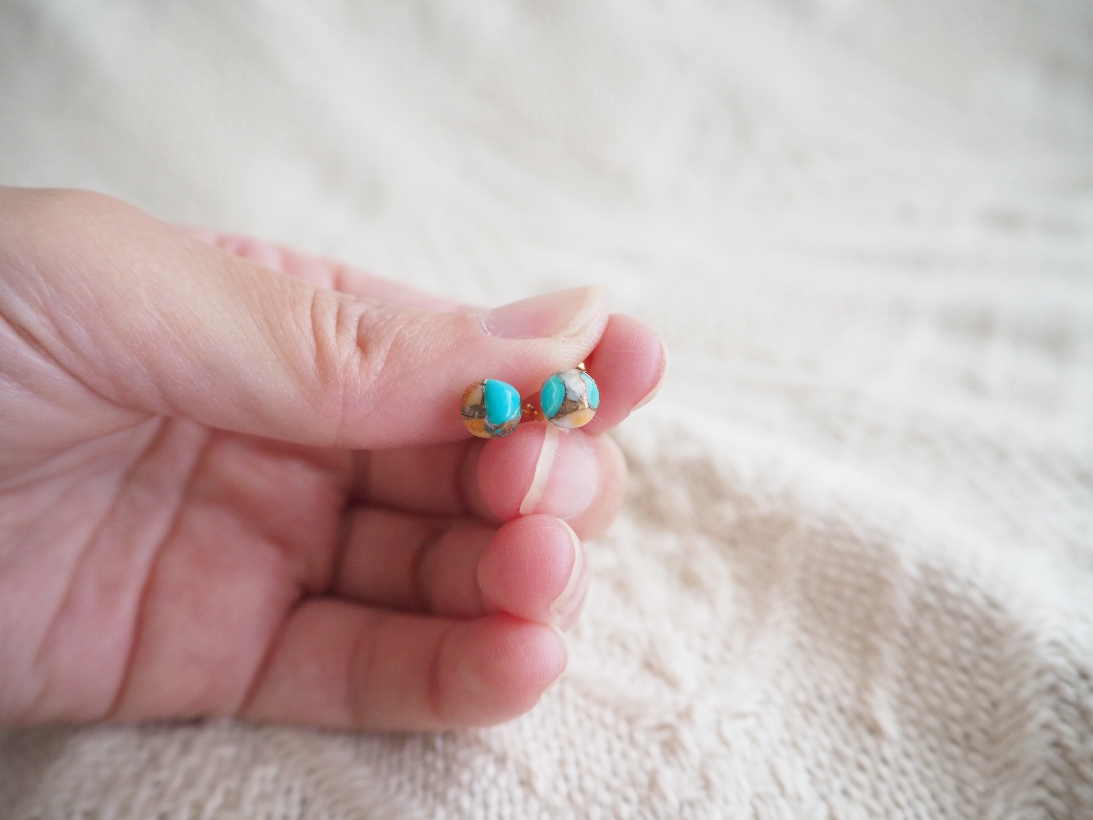 天然石オイスターカッパーターコイズを使用したピアスです。