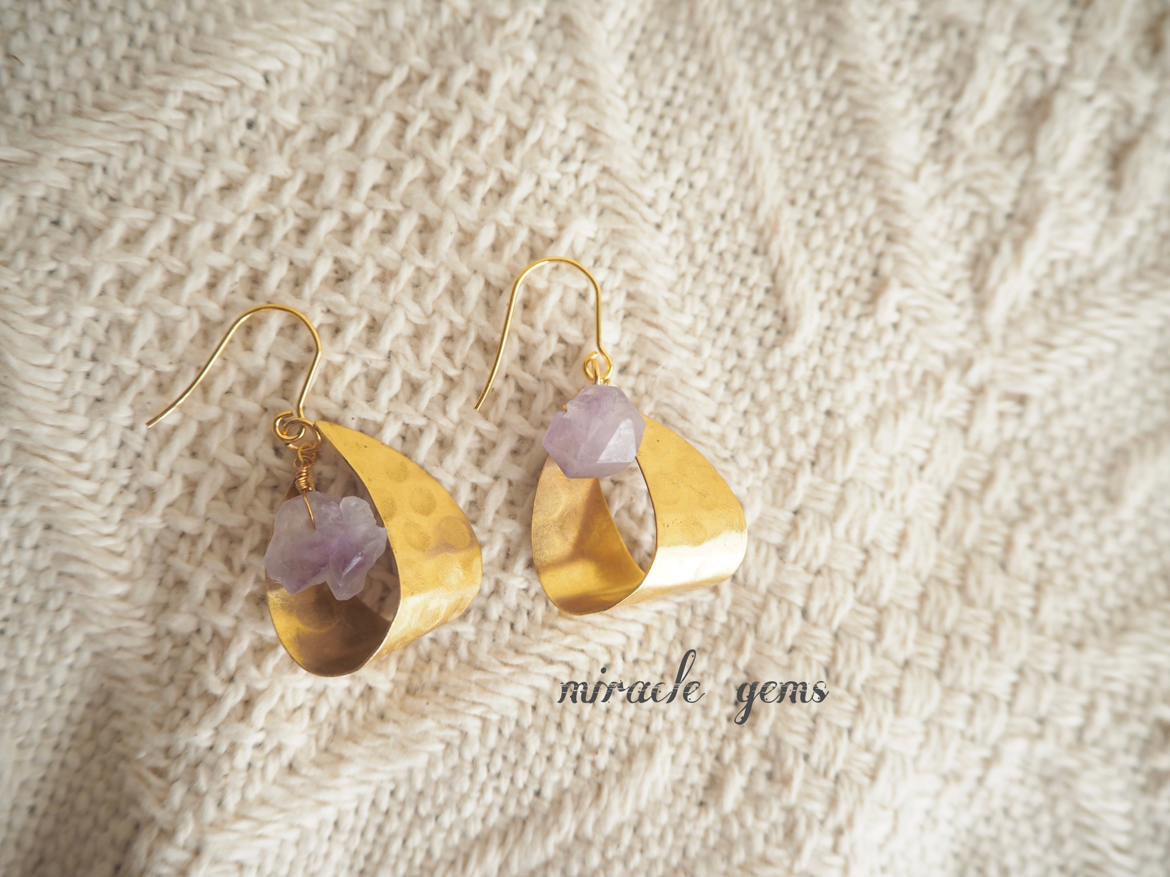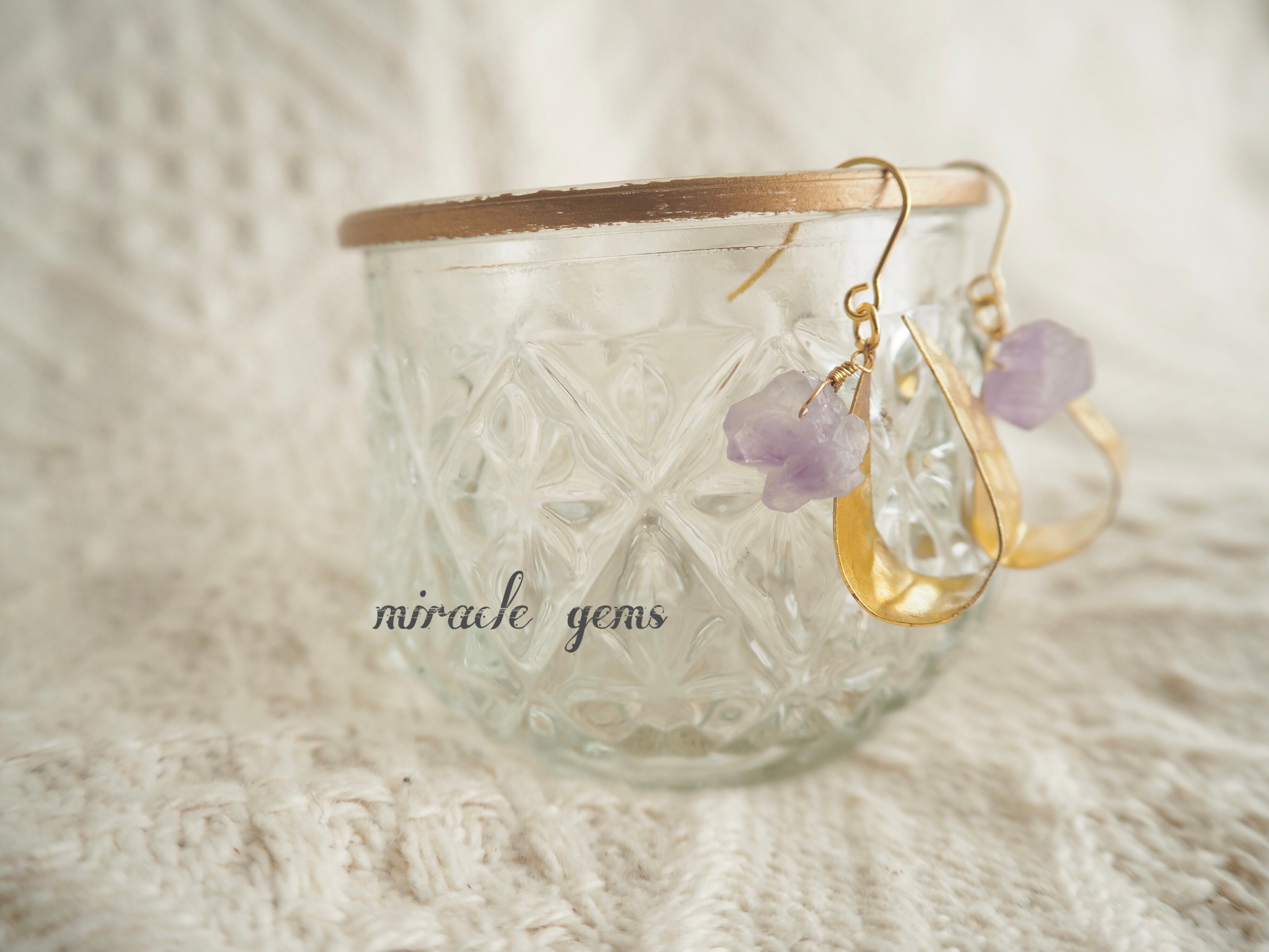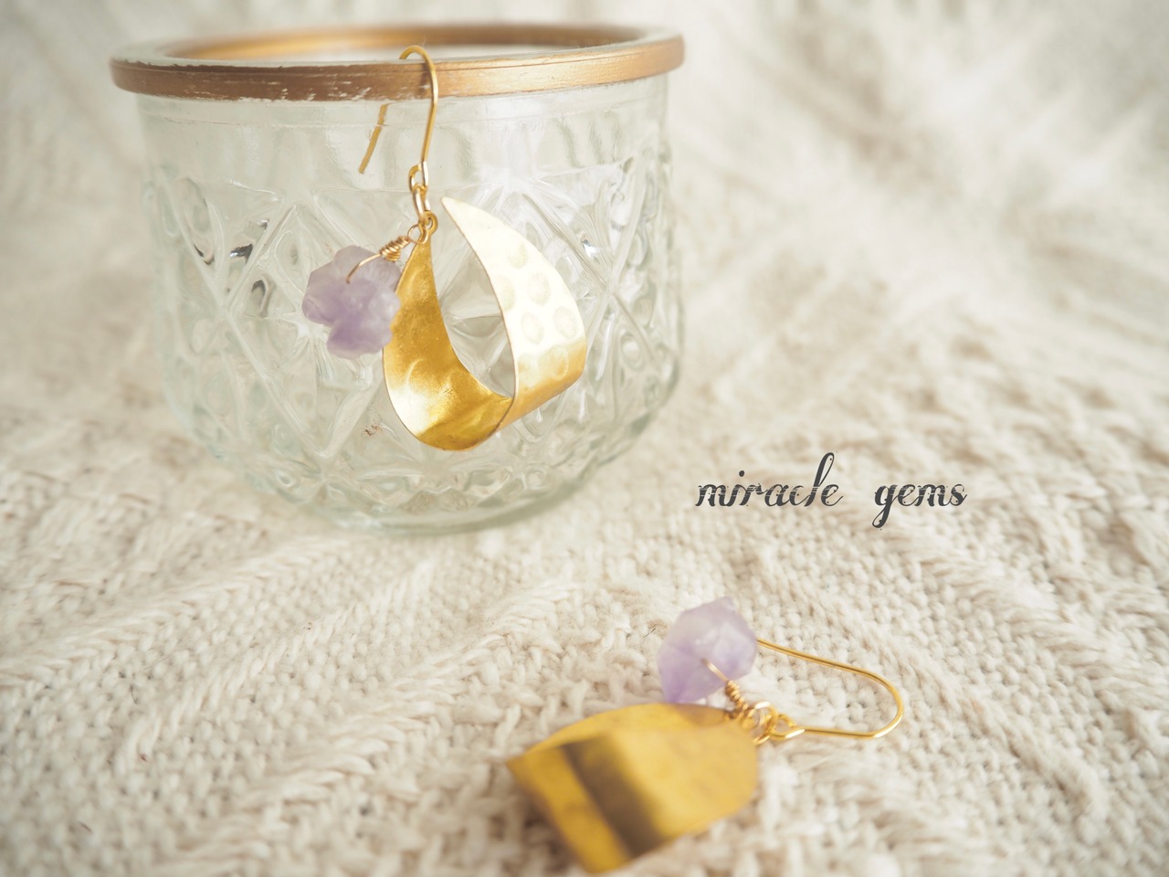何気なく三日月を半分にしてアメジストを護っているような、そんなピアスです。