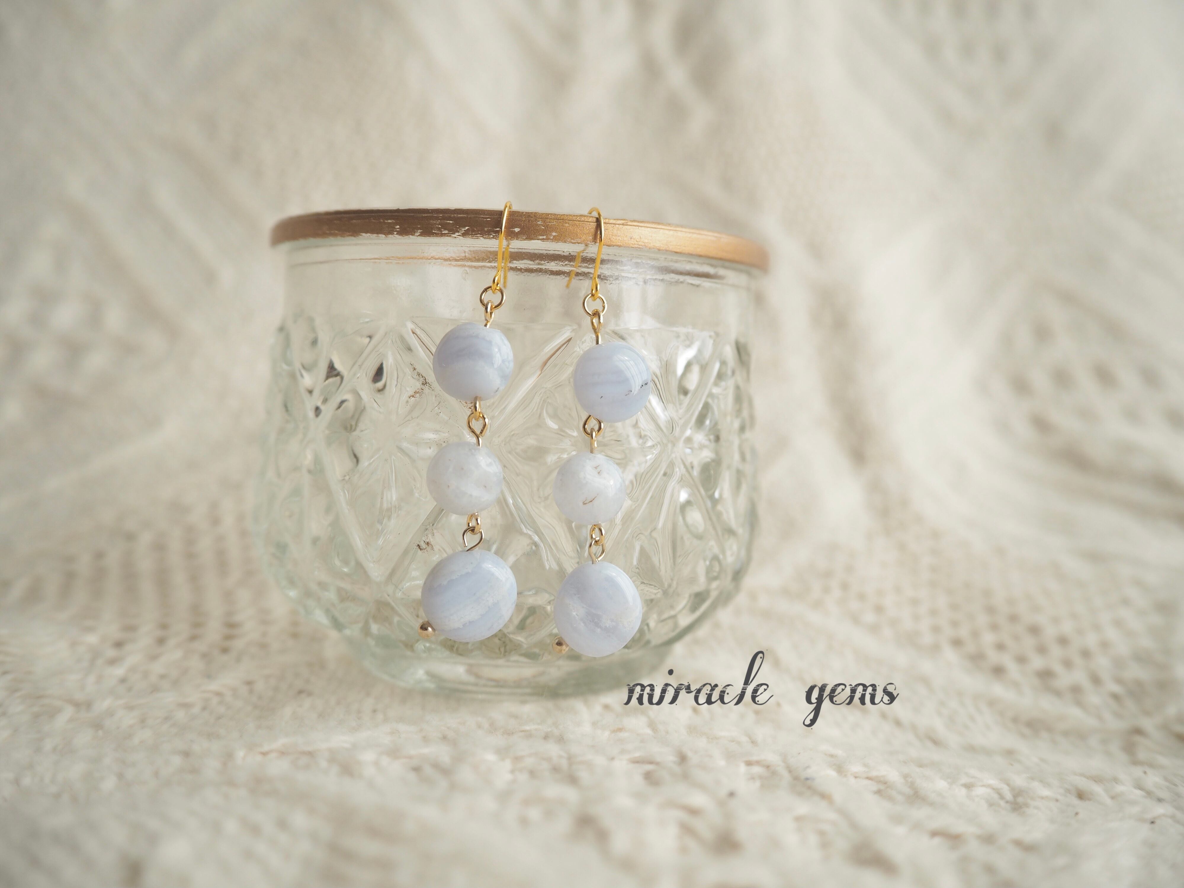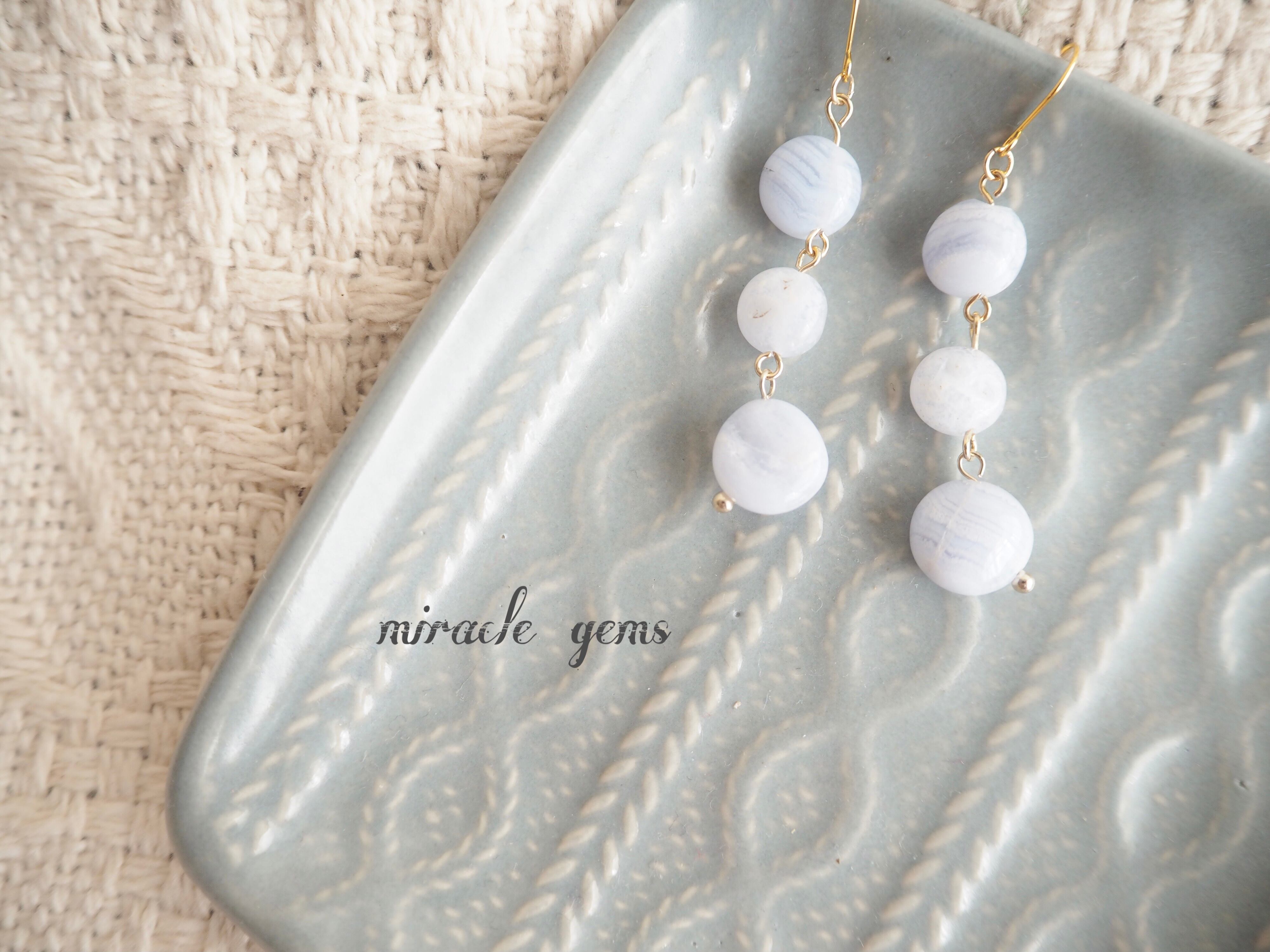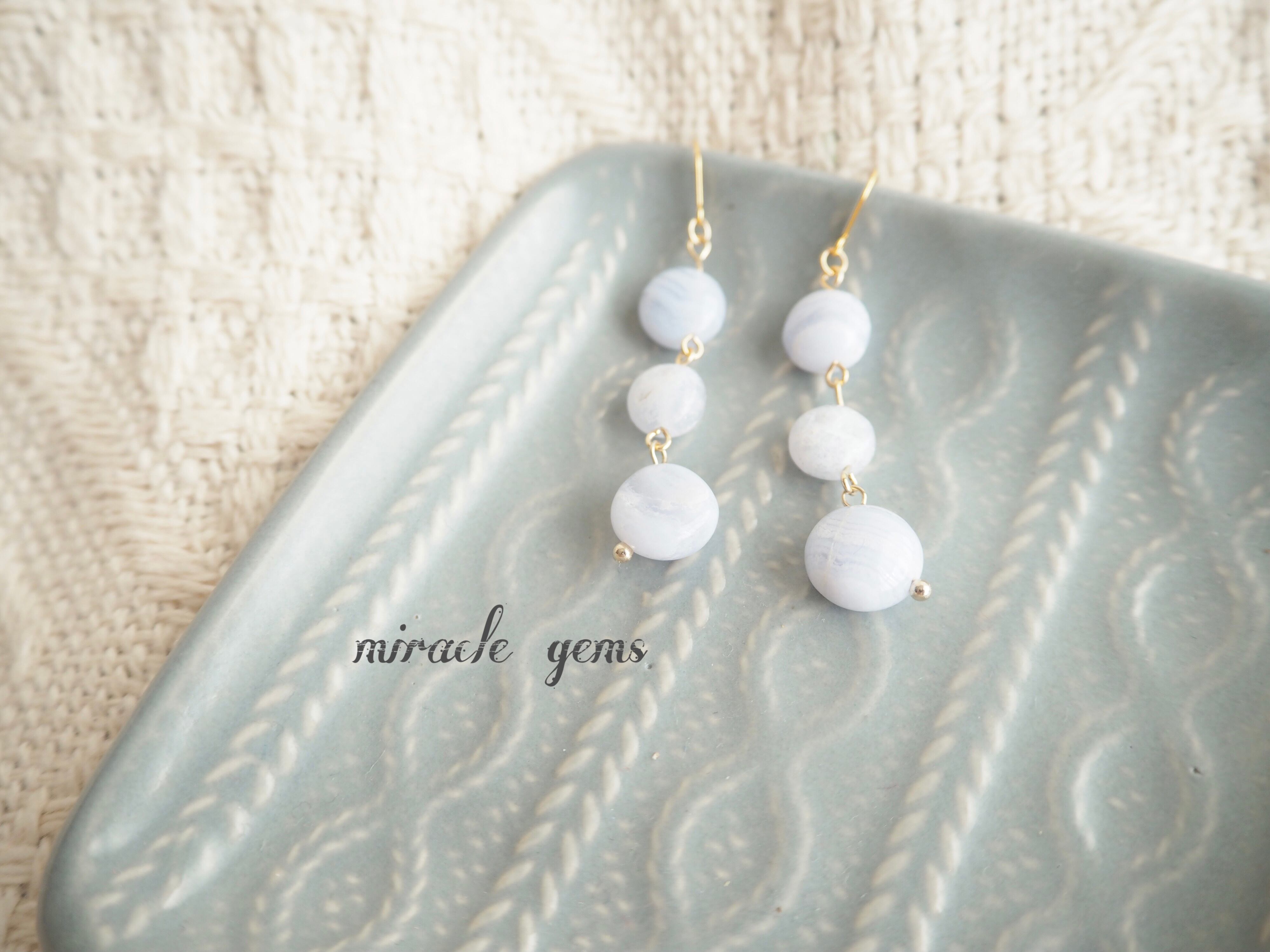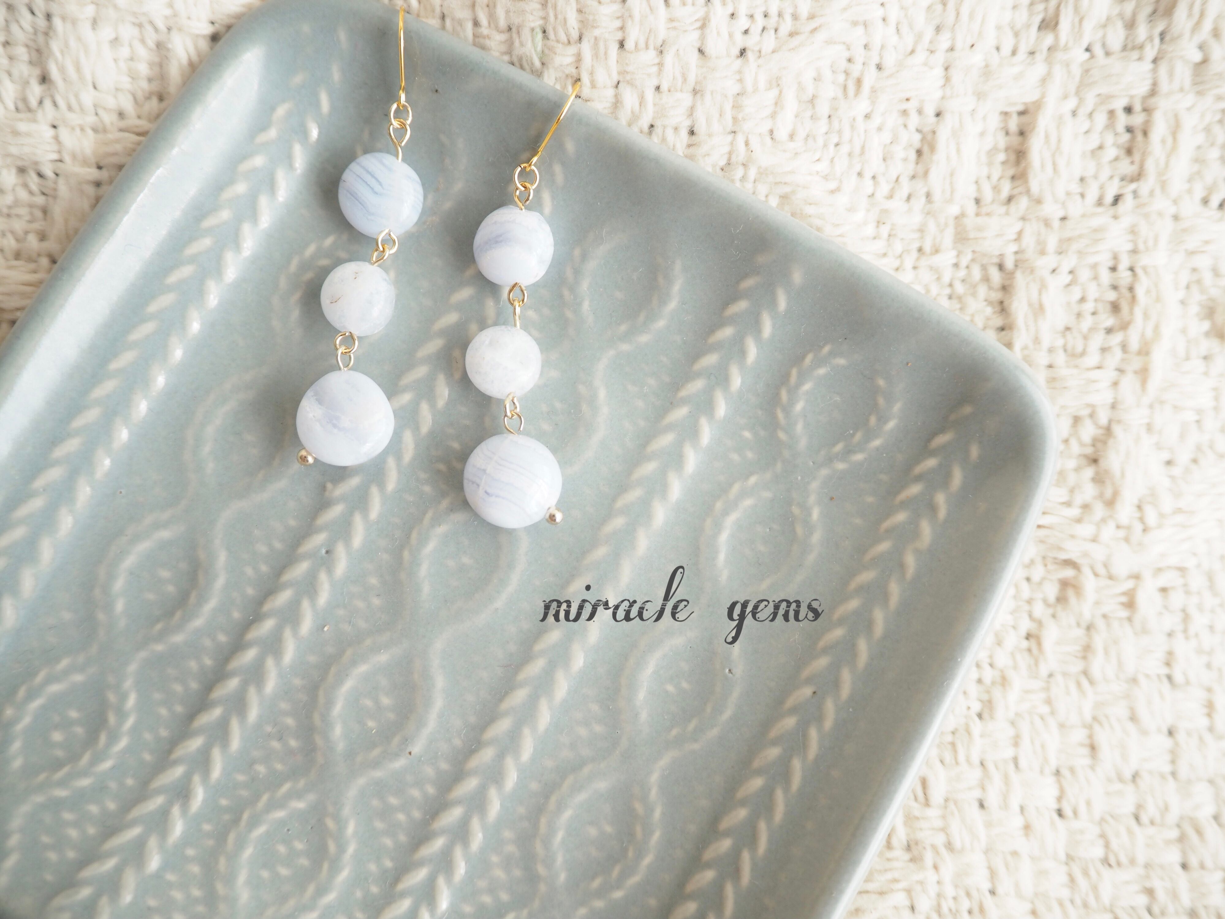 天然石ブルーレースを使用したピアスです。