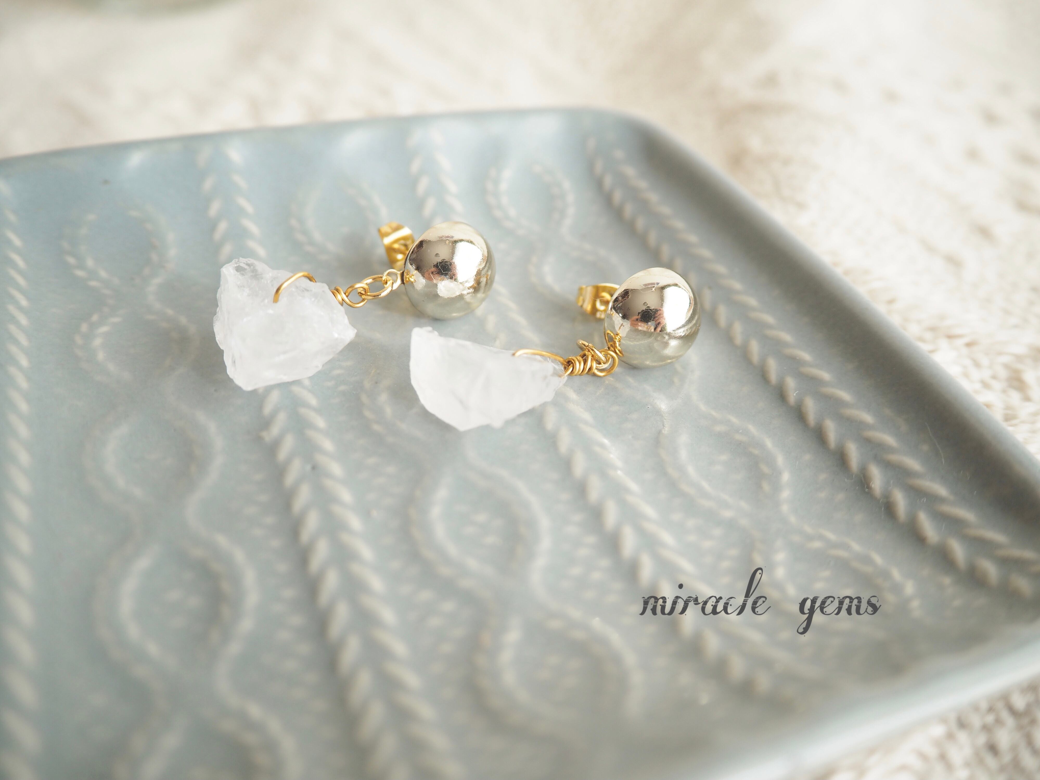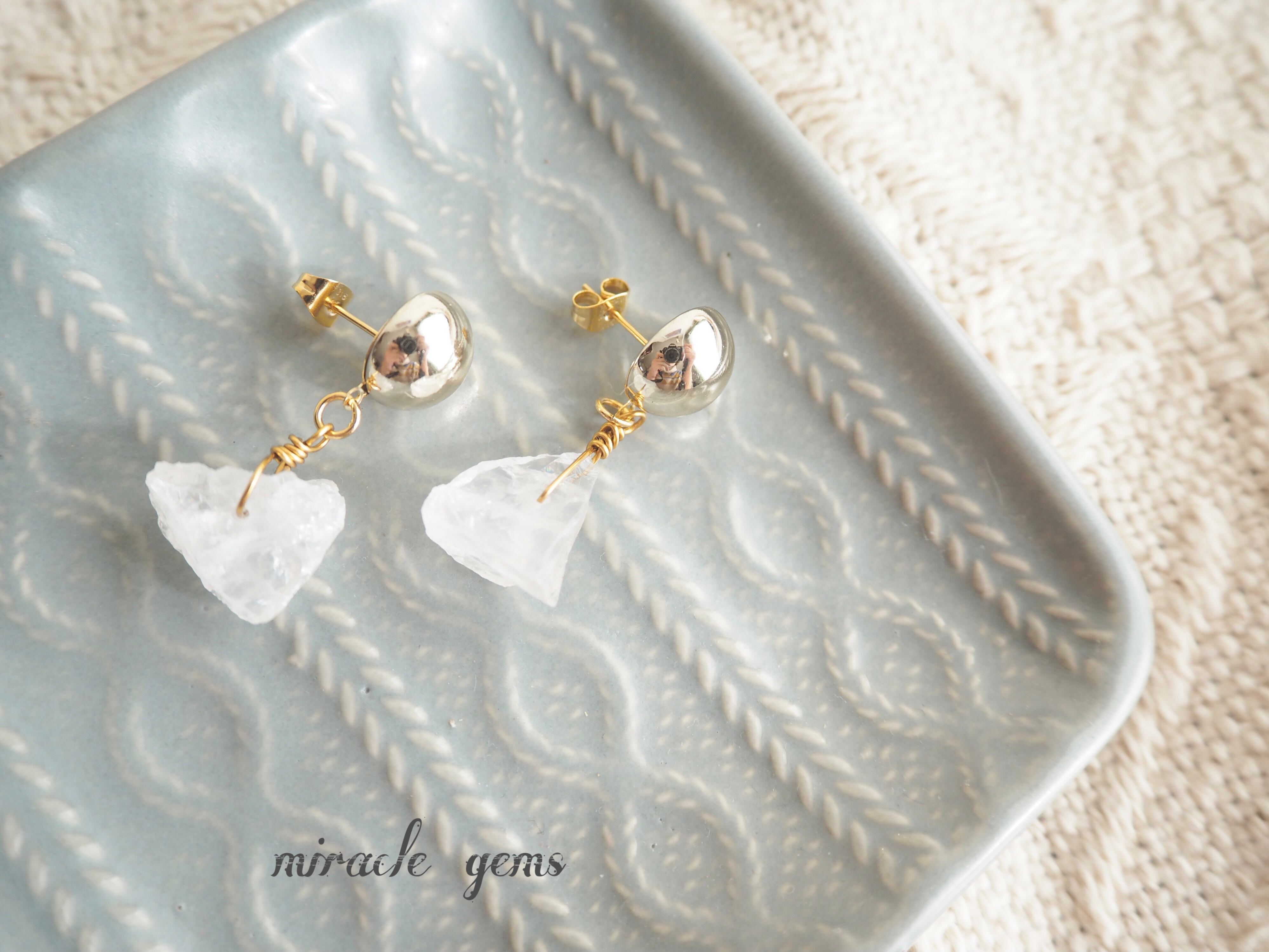 天然石クリスタル(水晶)を使用したピアスです。