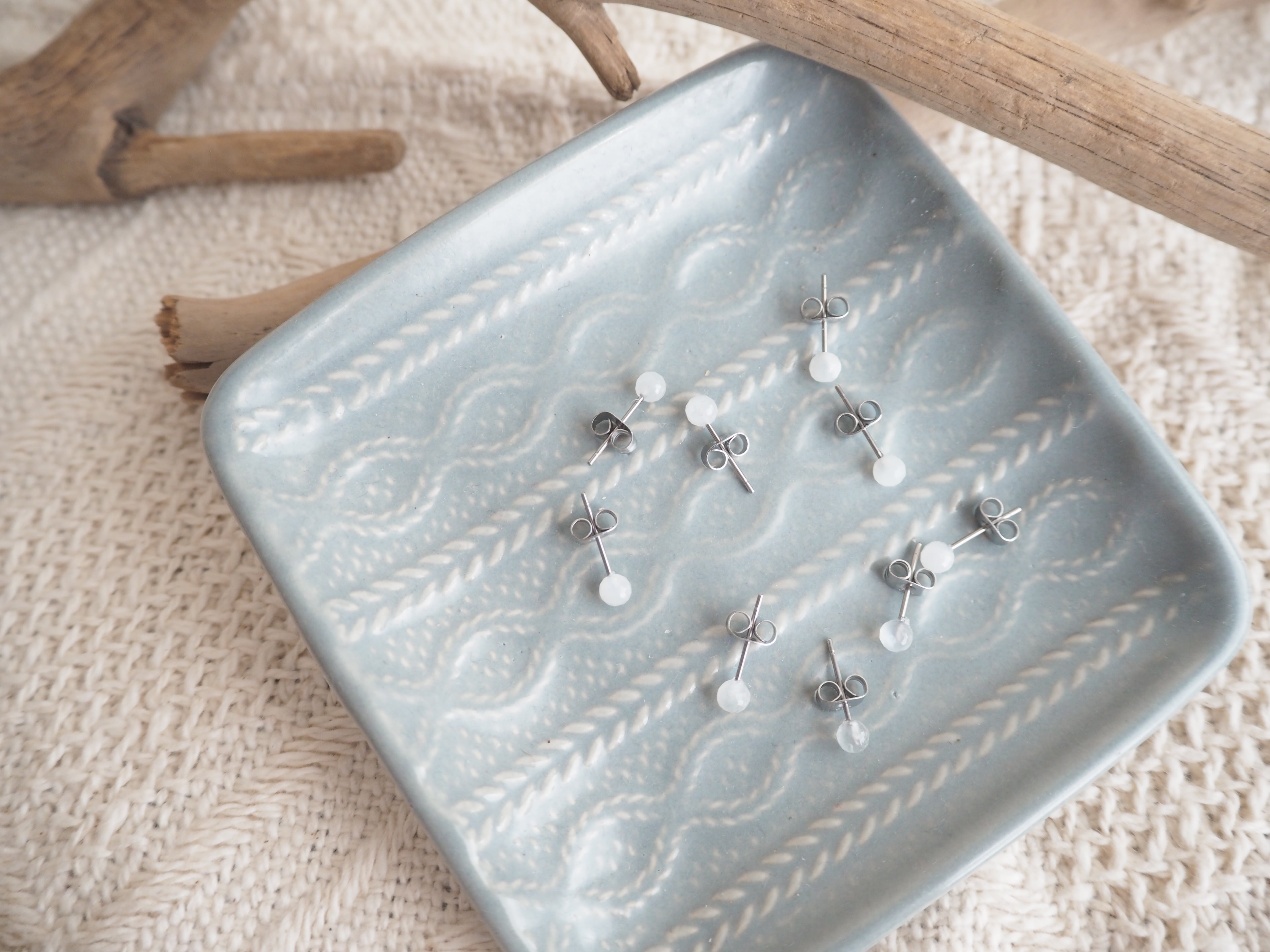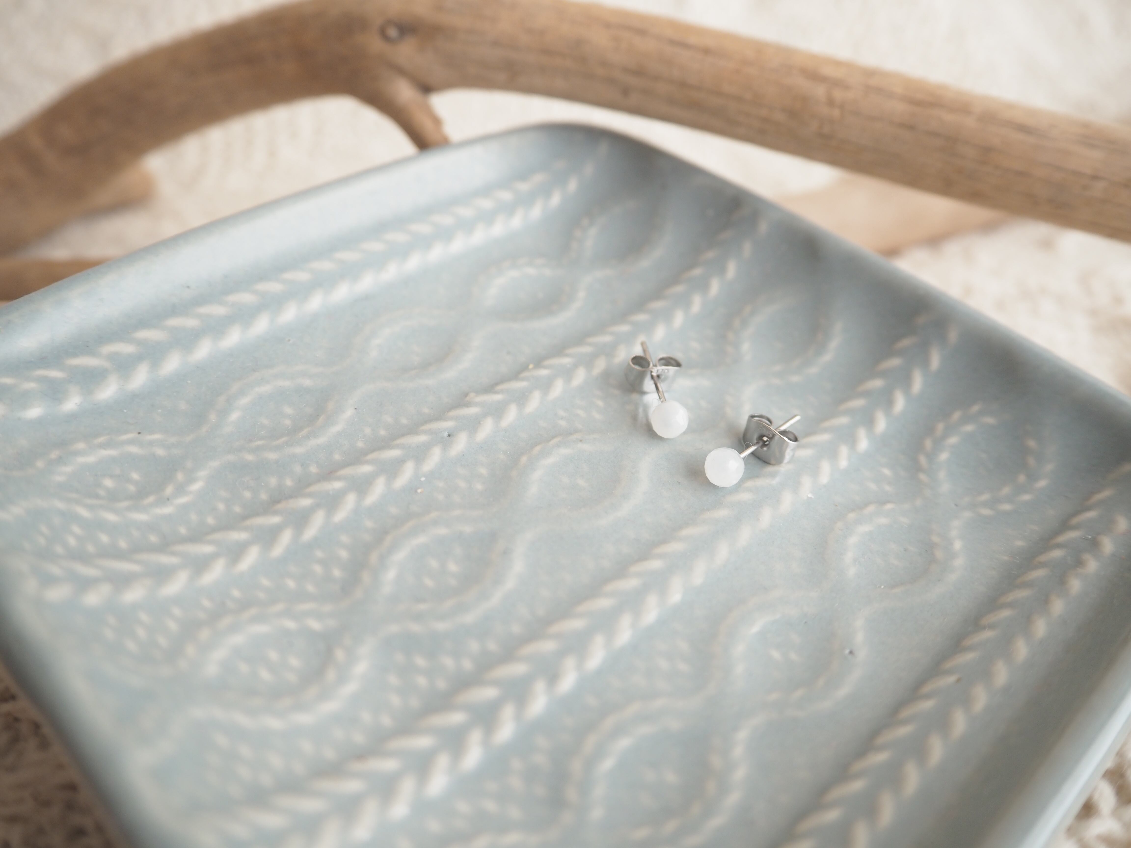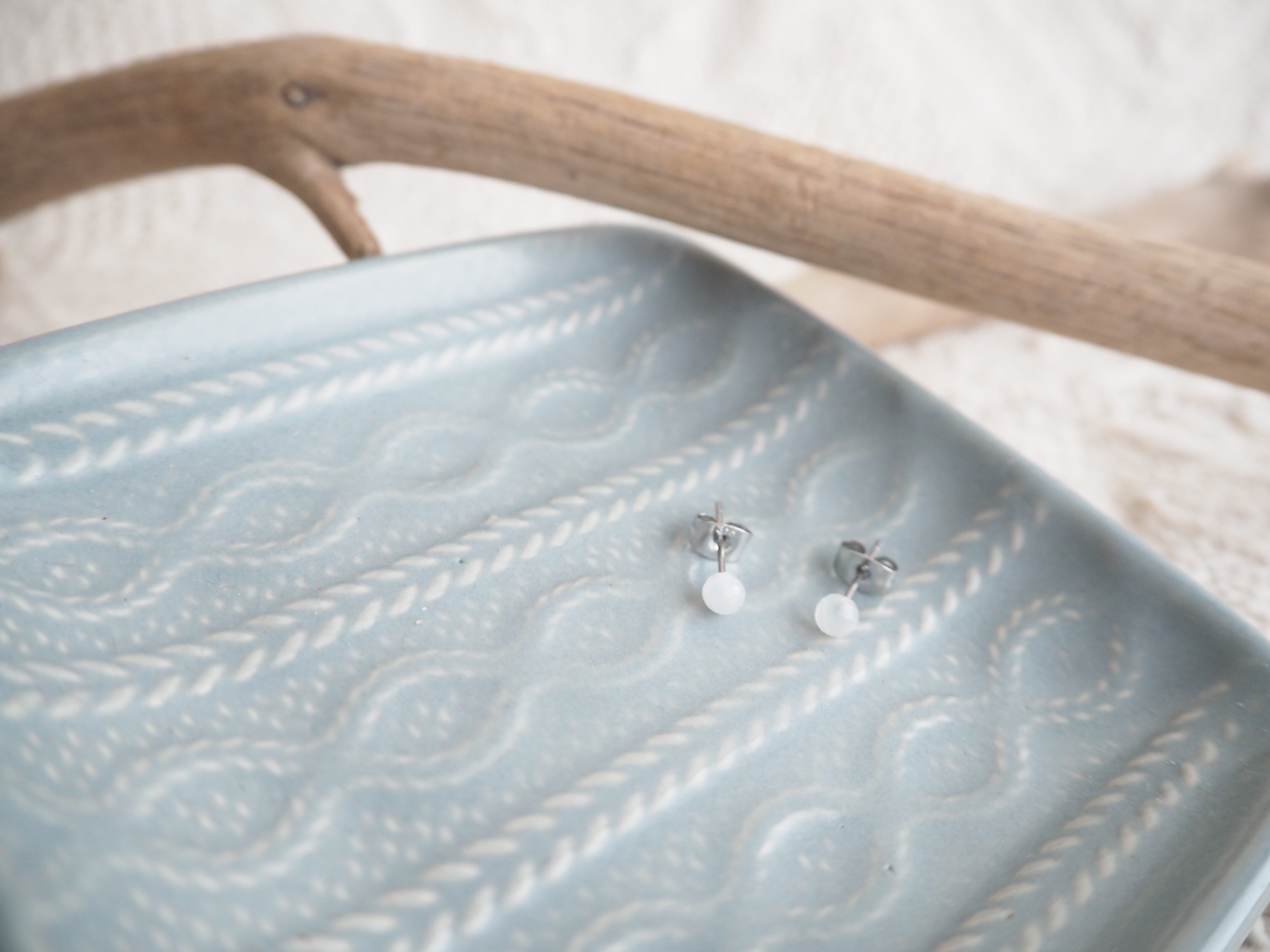 天然石ホワイトムーンストーンを使用したシンプルなピアスです。