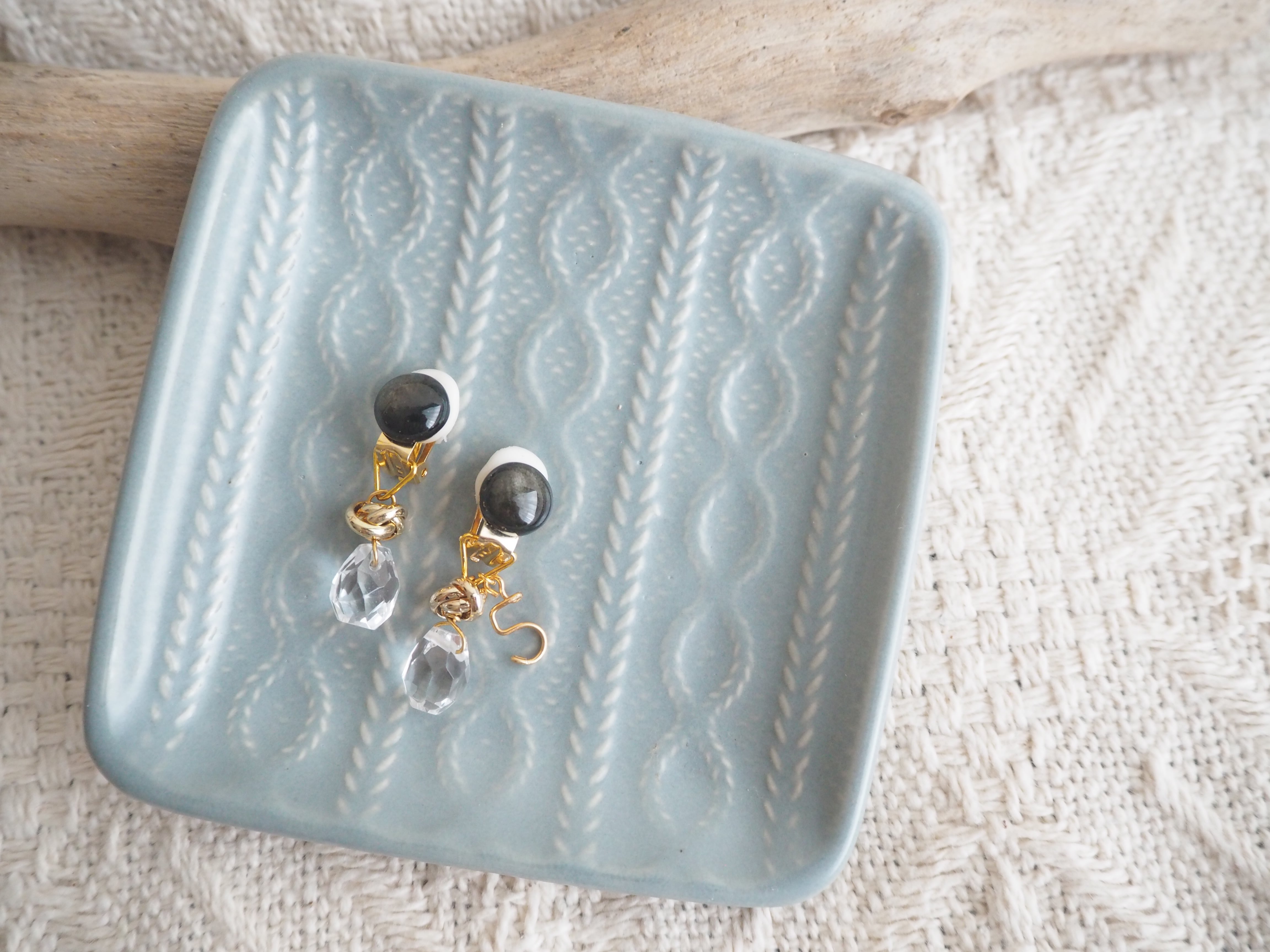 ゴールデンオブシディアンとクリスタルのイヤリングです。