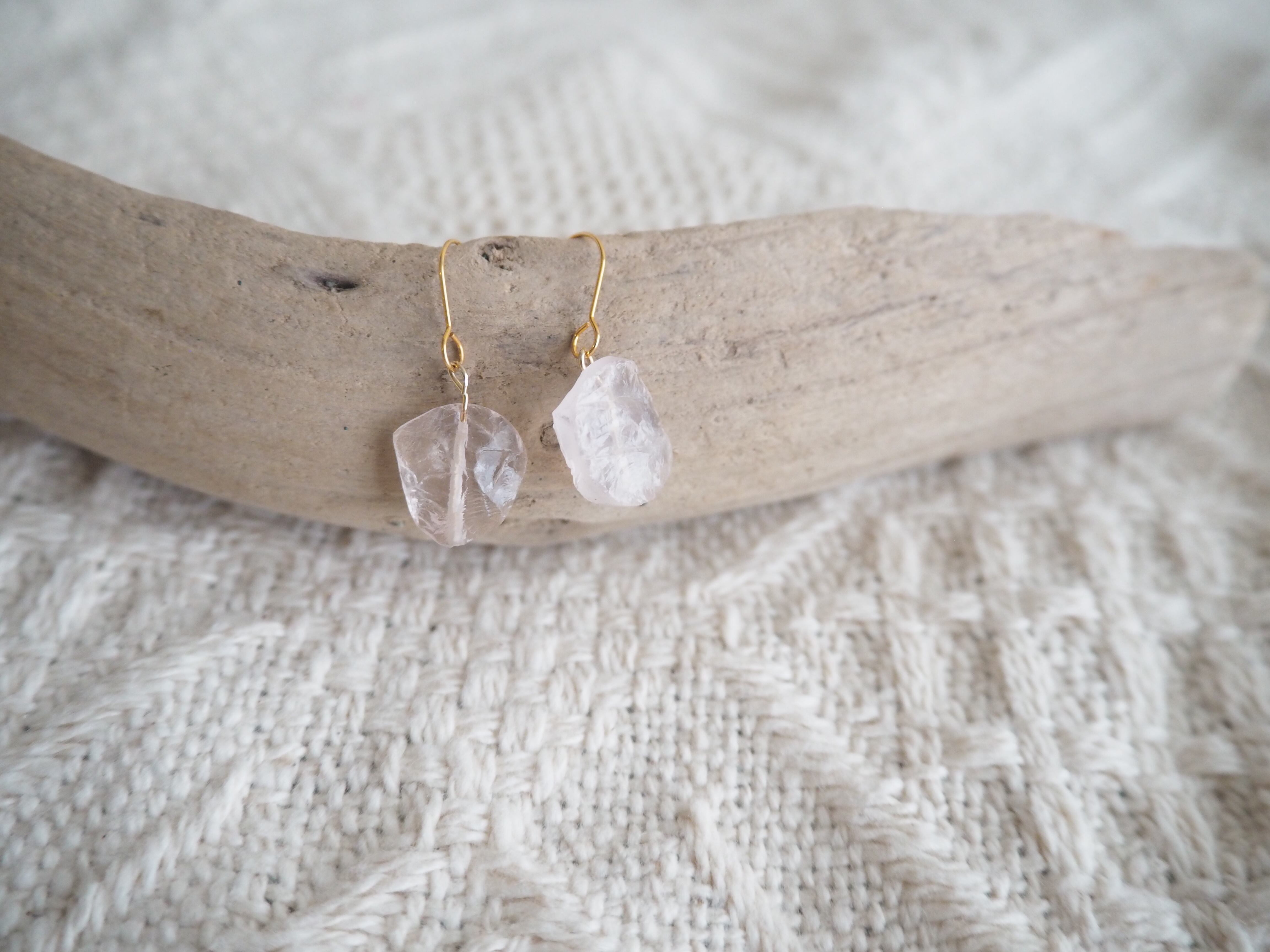 ローズクォーツを使用したピアスです。