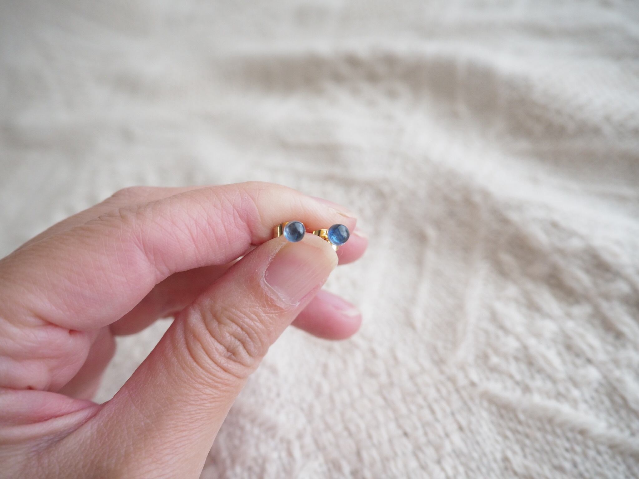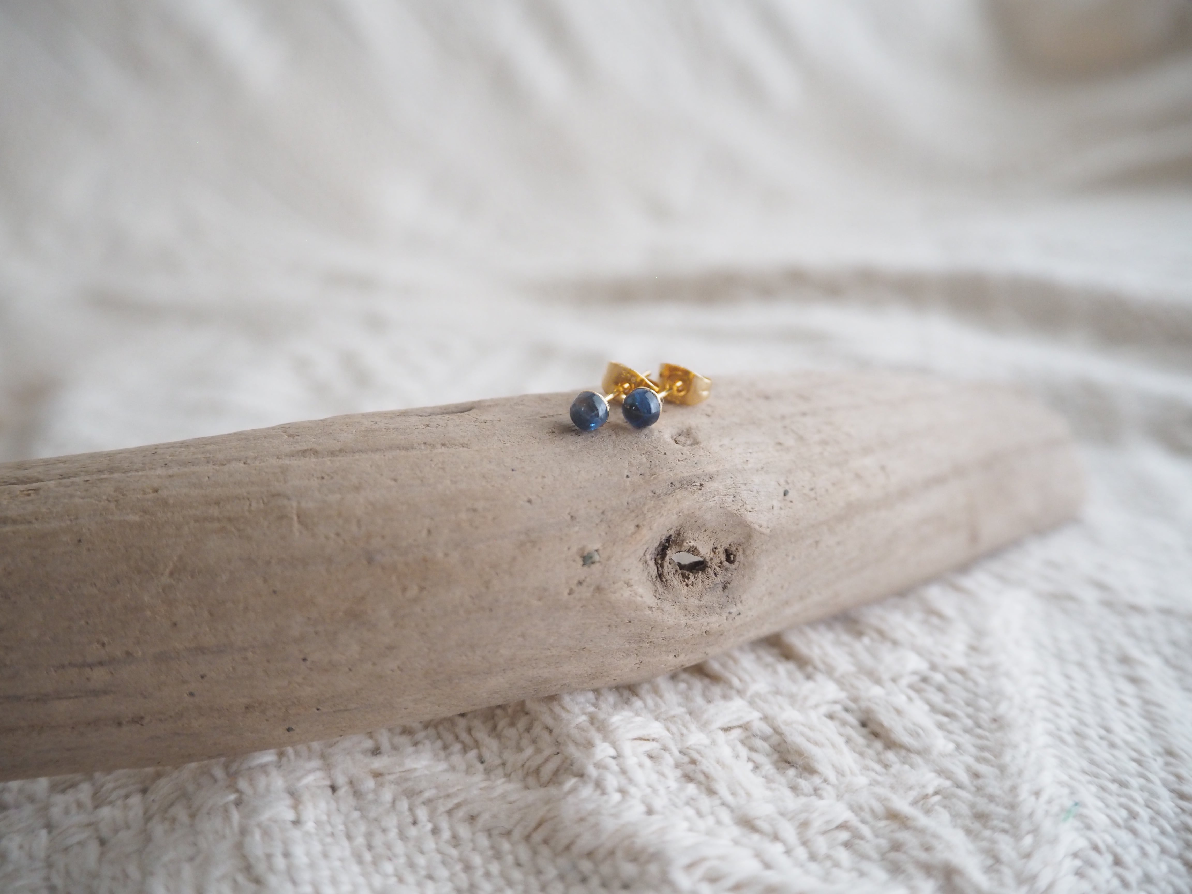 天然石カイヤナイトを使用したシンプルなピアス。