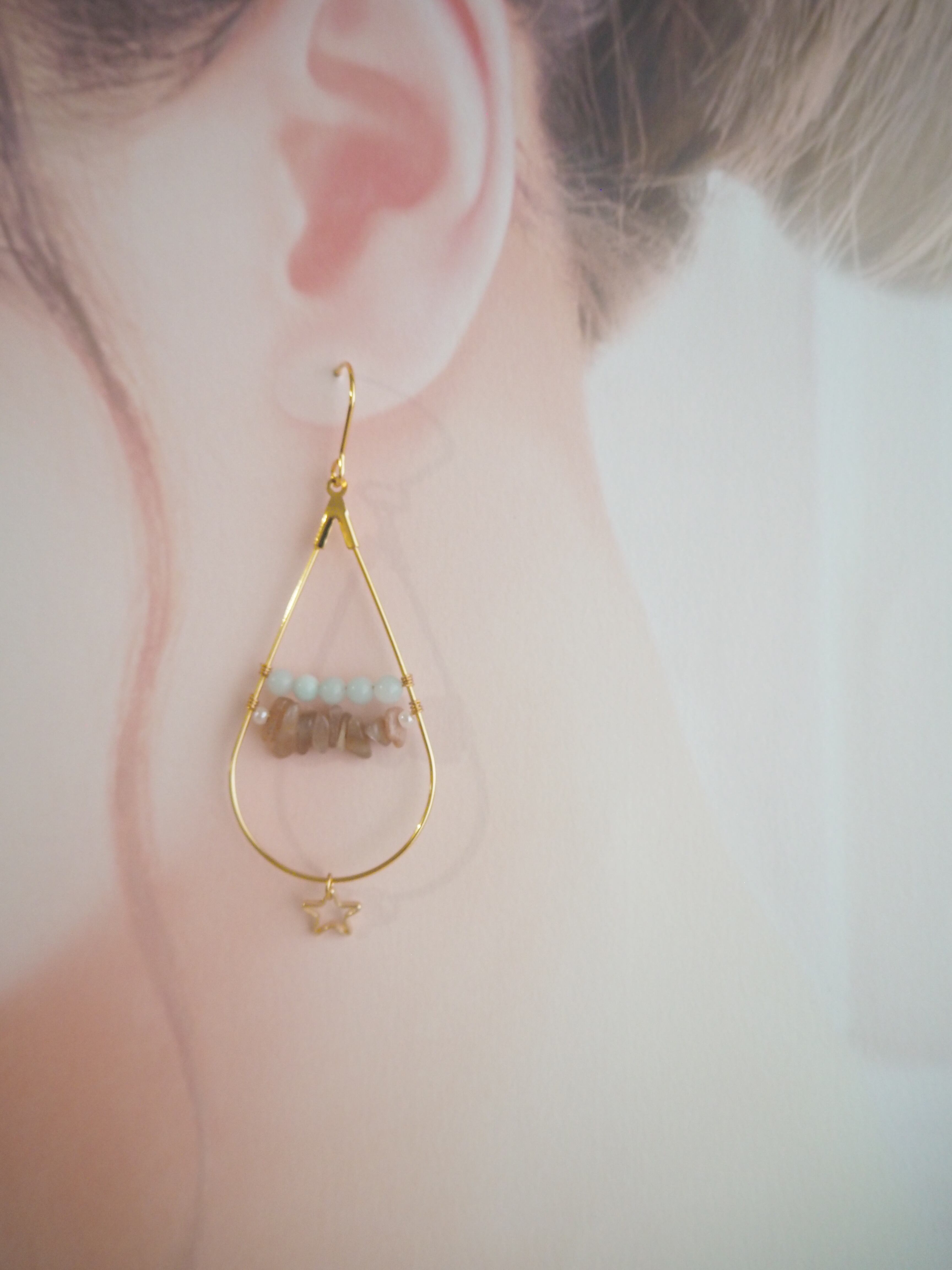 アマゾナイトとサンストーンを使用したピアスです。
