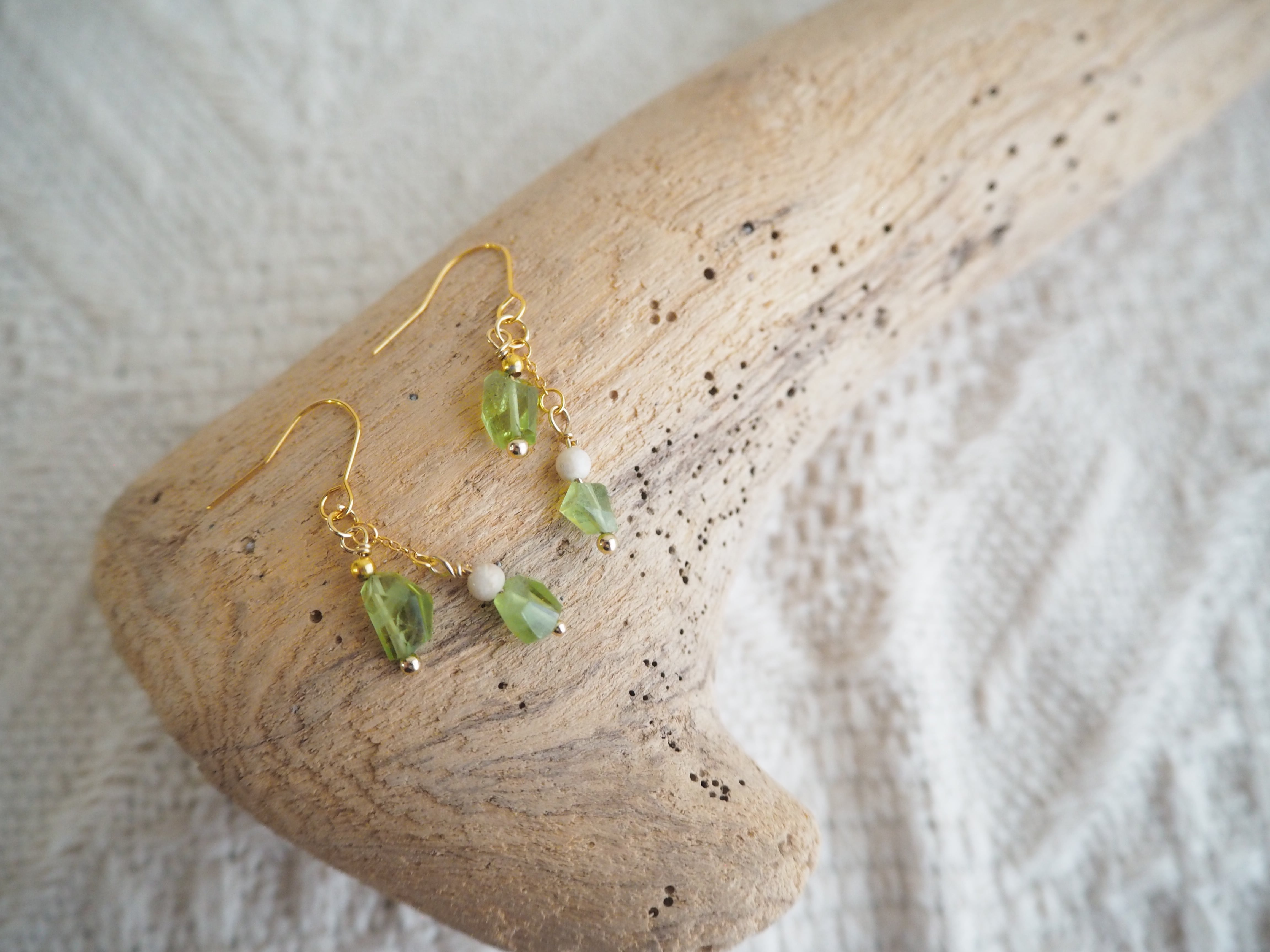 ペリドットの輝きは強く、見ていると8月らしく元気さのある石。