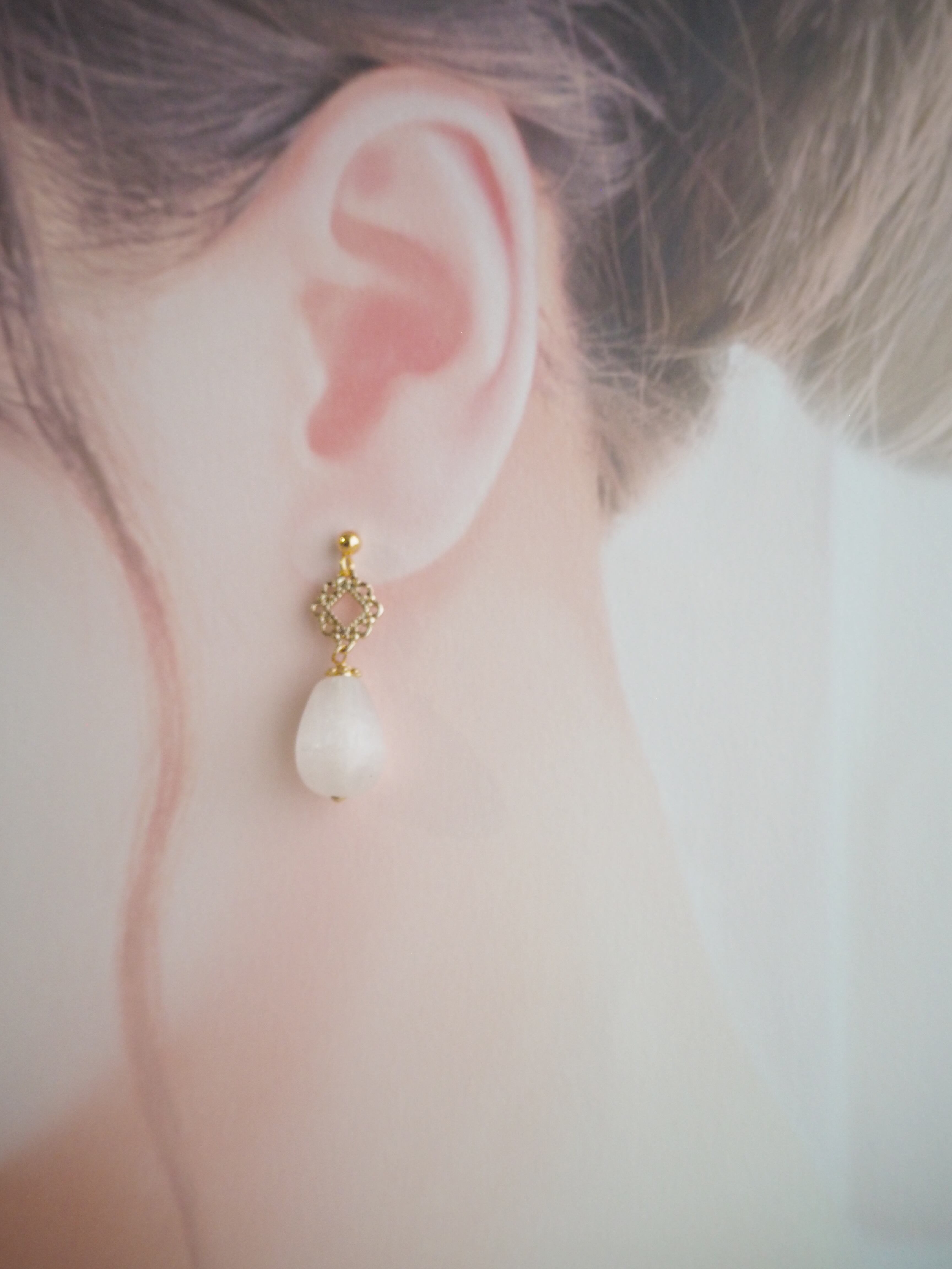 セレナイトを使用したピアスです。