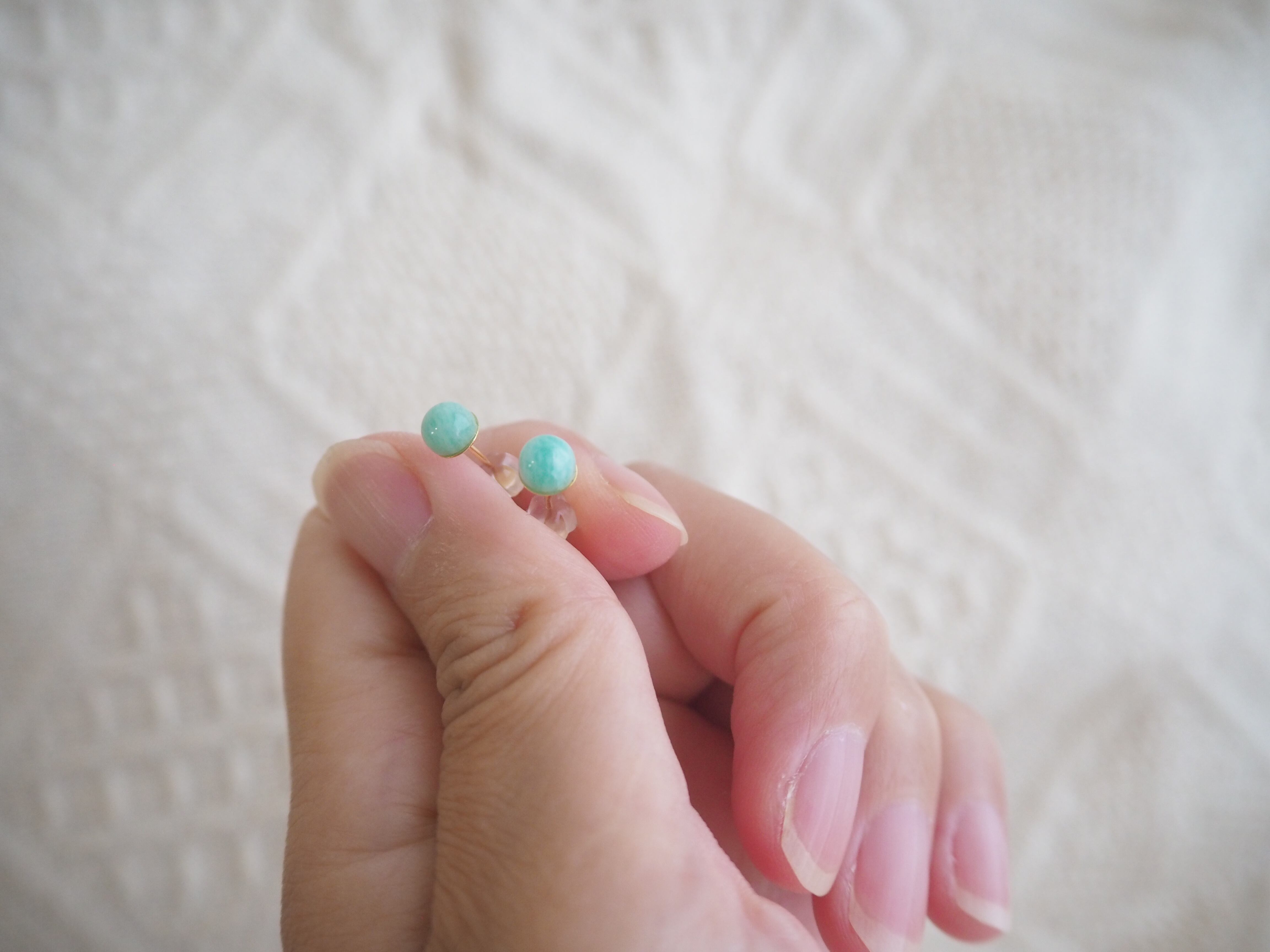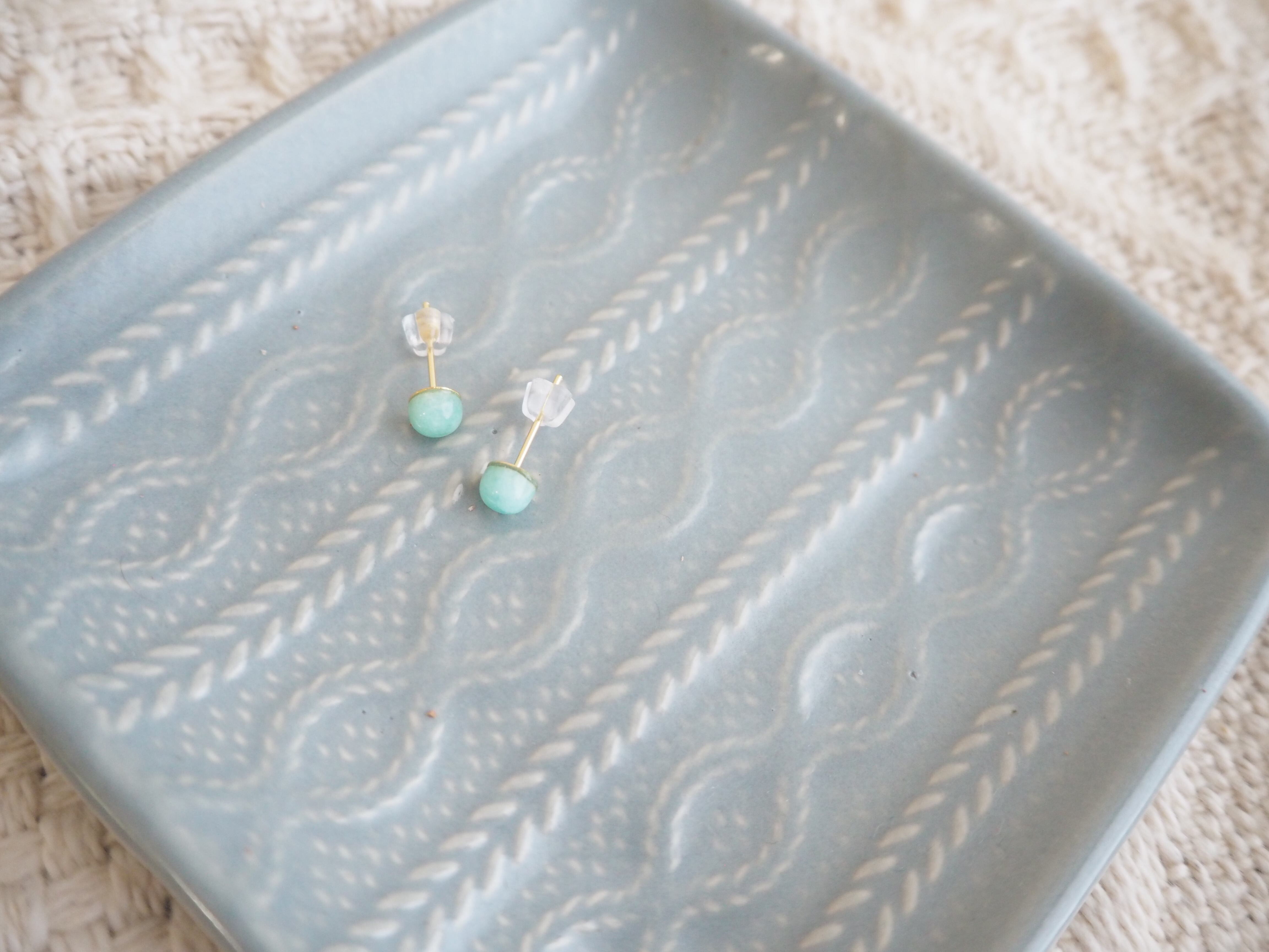 天然石アマゾナイトを使用したシンプルなピアス。