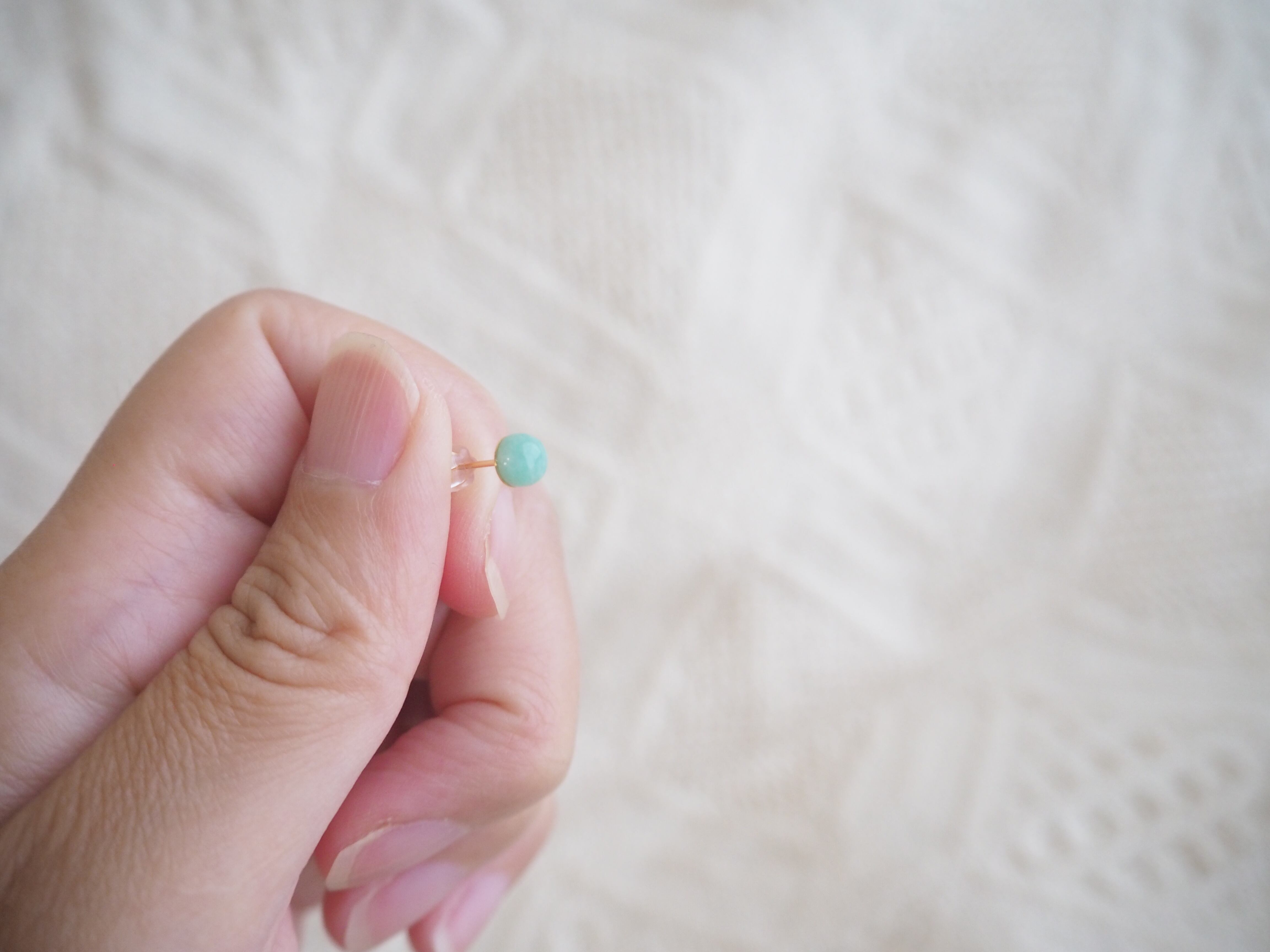 5㎜の石ですが、アマゾナイトのブルーグリーンのようななんとも言えない色に魅了されます。
